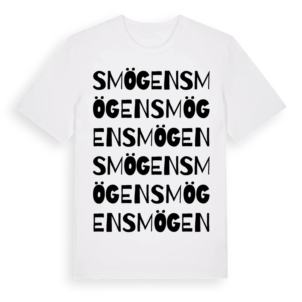 En ordlek byggd på Smögens namn. Subtilt och klurig – ett motiv som bara de som verkligen känner platsen fullt ut förstår. Premium bomull, unisex – från byn Smögen i Västra Götalands län.