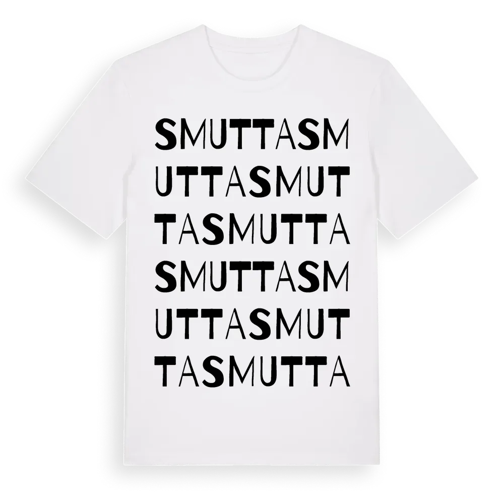 Smutta ordlek t-shirt är inspirerad av Smutta i Västra Götalands län, Sverige. Tröjan är designad för dig som har en speciell koppling till platsen – oavsett om du bor här, har rötterna här eller bara älskar Smutta.
