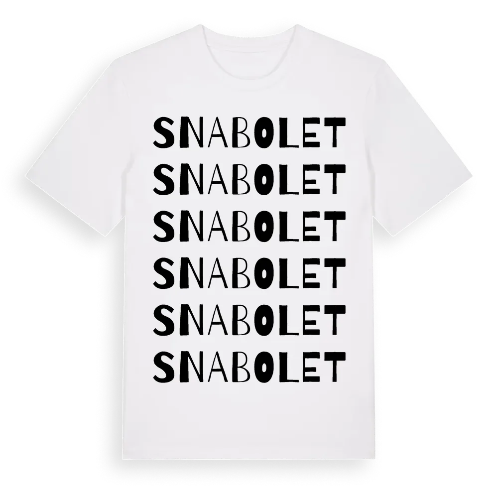 En ordlek byggd på Snabolets namn. Subtilt och klurig – ett motiv som bara de som verkligen känner platsen fullt ut förstår. Premium bomull, unisex – från byn Snabolet i Västra Götalands län.