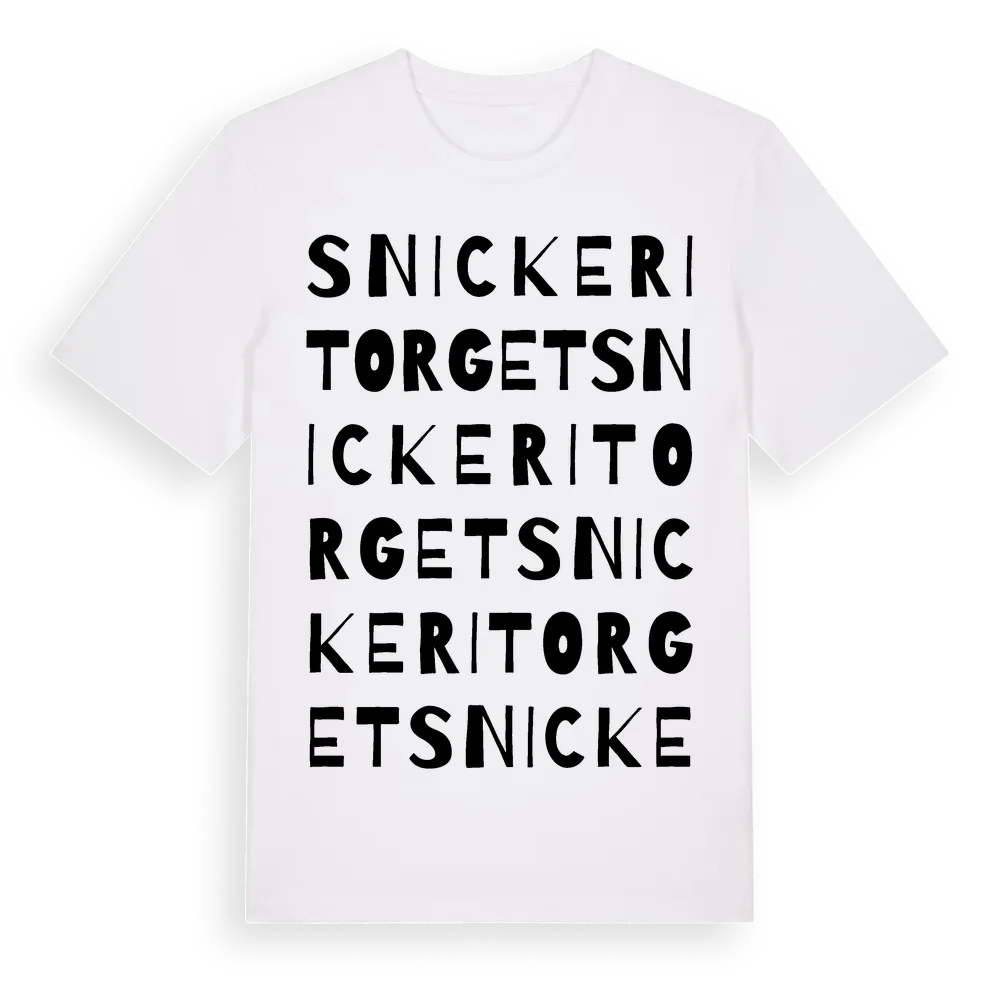 Snickeritorget ordlek t-shirt är inspirerad av Snickeritorget i Västra Götalands län, Sverige. Tröjan är designad för dig som har en speciell koppling till platsen – oavsett om du bor här, har rötterna här eller bara älskar Snickeritorget.