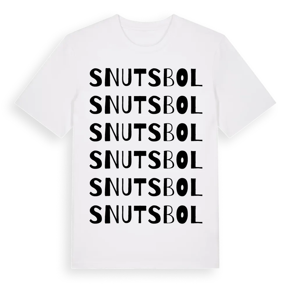 Snutsbol ordlek t-shirt är inspirerad av Snutsbol i Västra Götalands län, Sverige. Tröjan är designad för dig som har en speciell koppling till platsen – oavsett om du bor här, har rötterna här eller bara älskar Snutsbol.