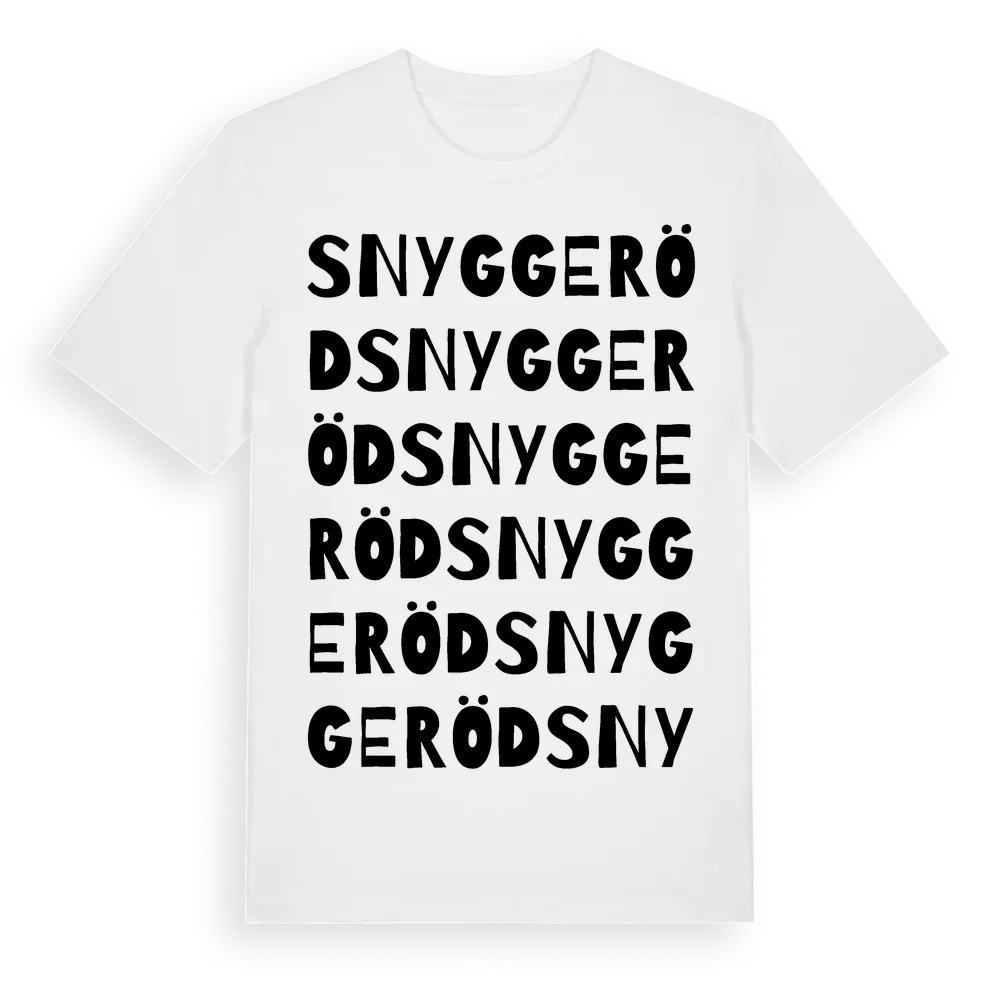 Snyggeröd ordlek t-shirt är inspirerad av Snyggeröd i Västra Götalands län, Sverige. Tröjan är designad för dig som har en speciell koppling till platsen – oavsett om du bor här, har rötterna här eller bara älskar Snyggeröd.