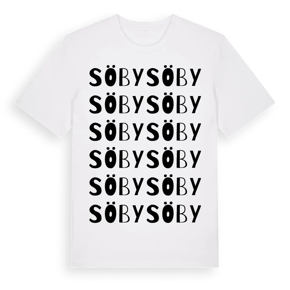 Söby ordlek t-shirt är inspirerad av byn Söby i Västra Götalands län, Sverige. Tröjan är designad för dig som har en speciell koppling till platsen – oavsett om du bor här, har rötterna här eller bara älskar Söby.