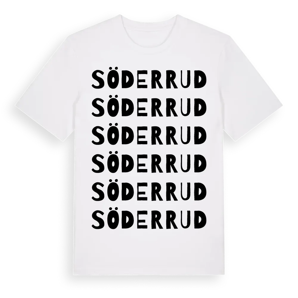 Söderrud ordlek t-shirt är inspirerad av byn Söderrud i Västra Götalands län, Sverige. Tröjan är designad för dig som har en speciell koppling till platsen – oavsett om du bor här, har rötterna här eller bara älskar Söderrud.