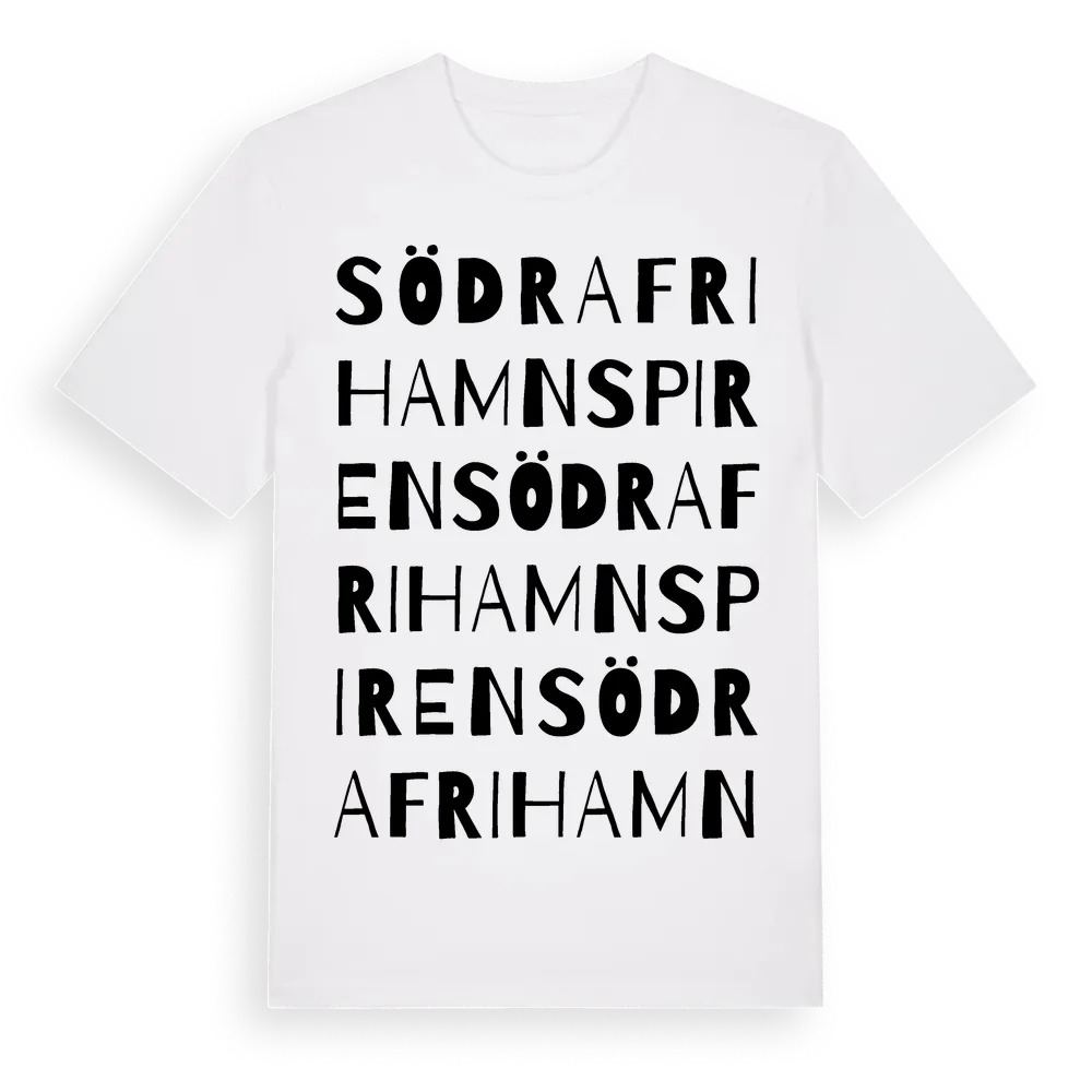 Södra Frihamnspiren ordlek t-shirt är inspirerad av Södra Frihamnspiren i Västra Götalands län, Sverige. Tröjan är designad för dig som har en speciell koppling till platsen – oavsett om du bor här, har rötterna här eller bara älskar Södra Frihamnspiren.
