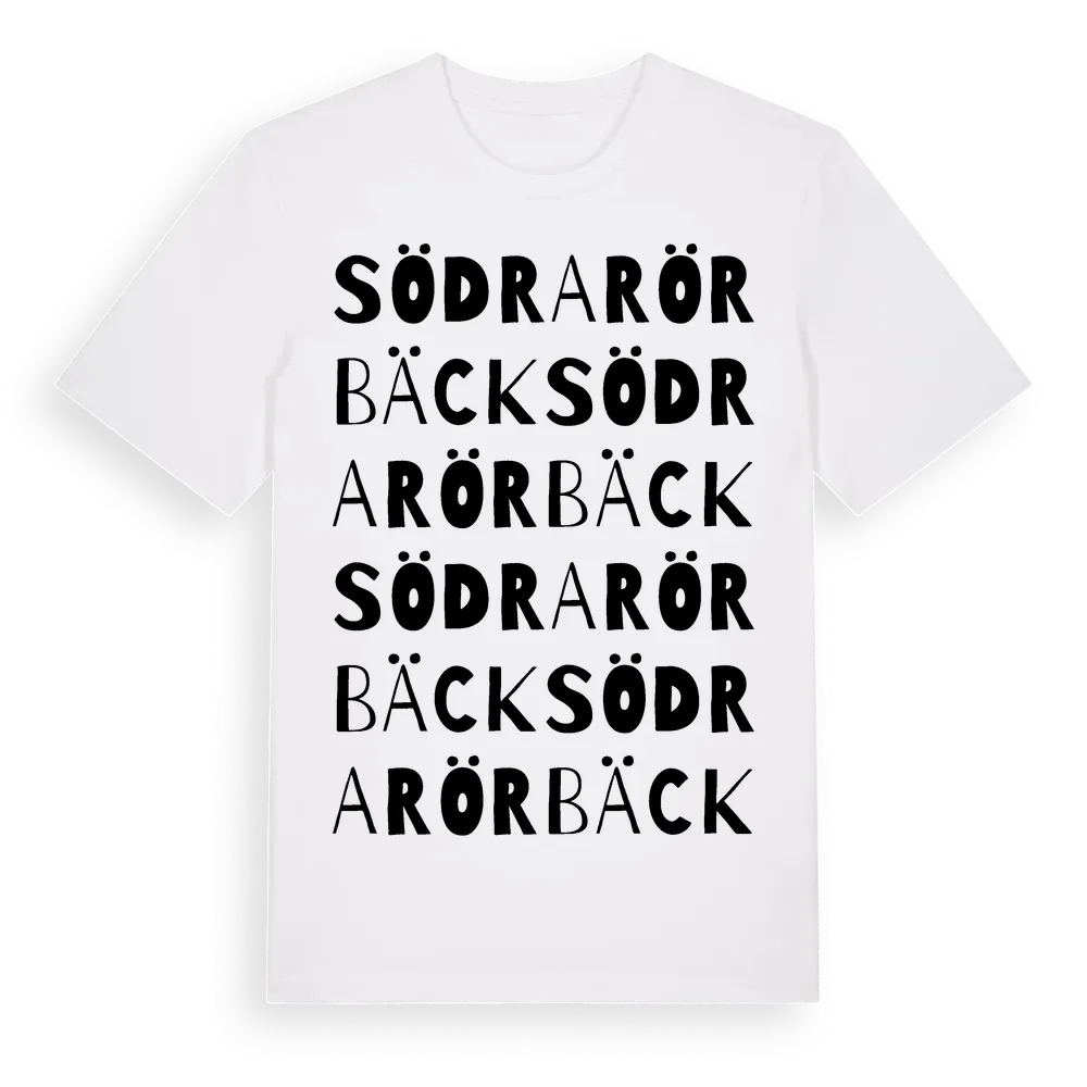 Södra Rörbäck ordlek t-shirt är inspirerad av byn Södra Rörbäck i Västra Götalands län, Sverige. Tröjan är designad för dig som har en speciell koppling till platsen – oavsett om du bor här, har rötterna här eller bara älskar Södra Rörbäck.