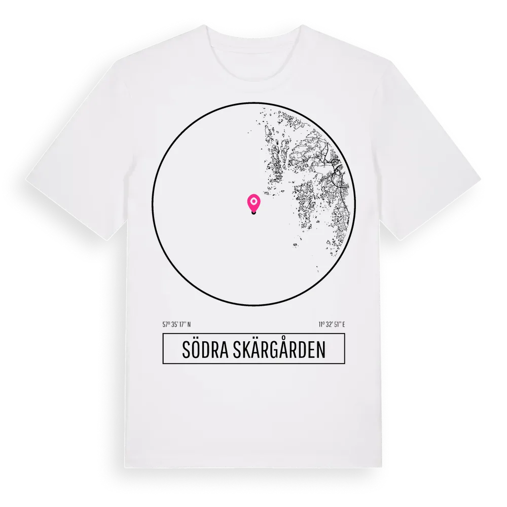 Södra Skärgården t-shirt är inspirerad av Södra Skärgården i Västra Götalands län, Sverige. Tröjan är designad för dig som har en speciell koppling till platsen – oavsett om du bor här, har rötterna här eller bara älskar Södra Skärgården.