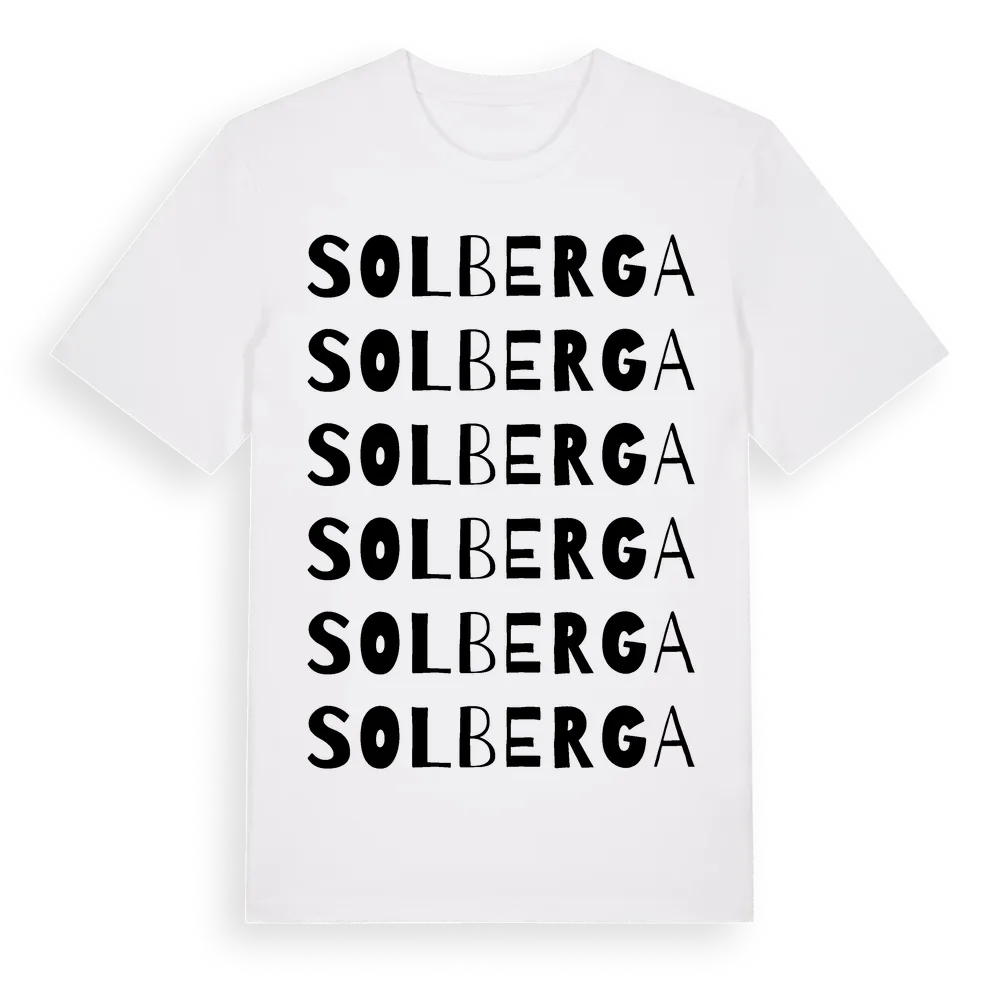 Solberga ordlek t-shirt är inspirerad av Solberga i Västra Götalands län, Sverige. Tröjan är designad för dig som har en speciell koppling till platsen – oavsett om du bor här, har rötterna här eller bara älskar Solberga.