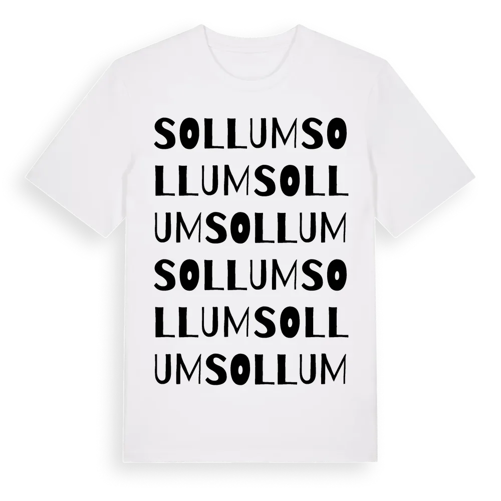 Sollum ordlek t-shirt är inspirerad av byn Sollum i Västra Götalands län, Sverige. Tröjan är designad för dig som har en speciell koppling till platsen – oavsett om du bor här, har rötterna här eller bara älskar Sollum.