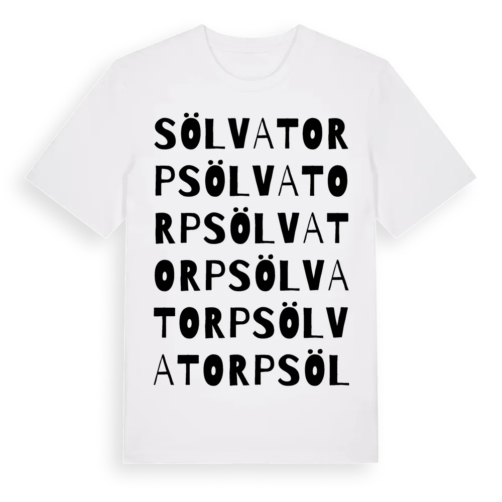 Sölvatorp ordlek t-shirt är inspirerad av byn Sölvatorp i Västra Götalands län, Sverige. Tröjan är designad för dig som har en speciell koppling till platsen – oavsett om du bor här, har rötterna här eller bara älskar Sölvatorp.