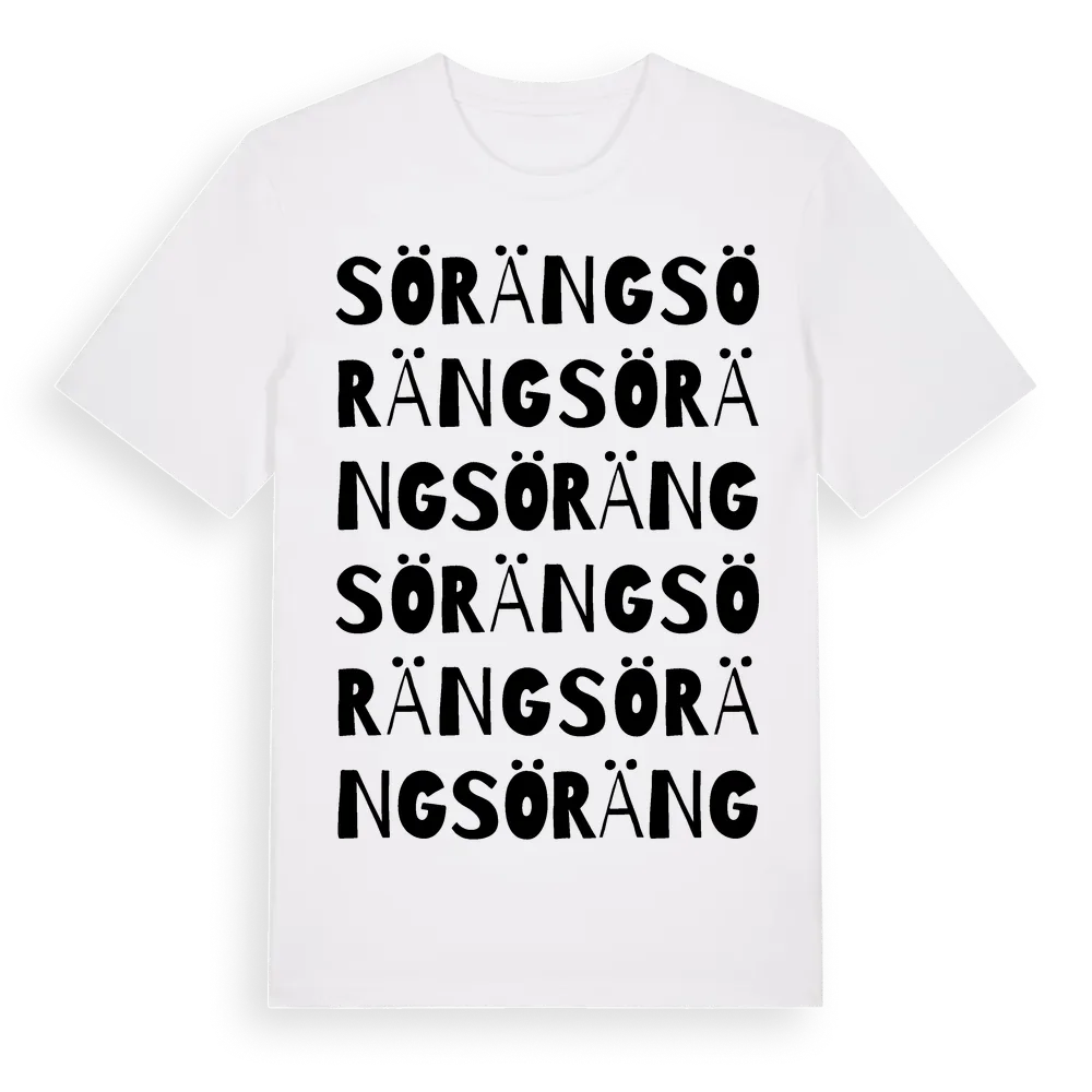 Söräng ordlek t-shirt är inspirerad av Söräng i Västra Götalands län, Sverige. Tröjan är designad för dig som har en speciell koppling till platsen – oavsett om du bor här, har rötterna här eller bara älskar Söräng.