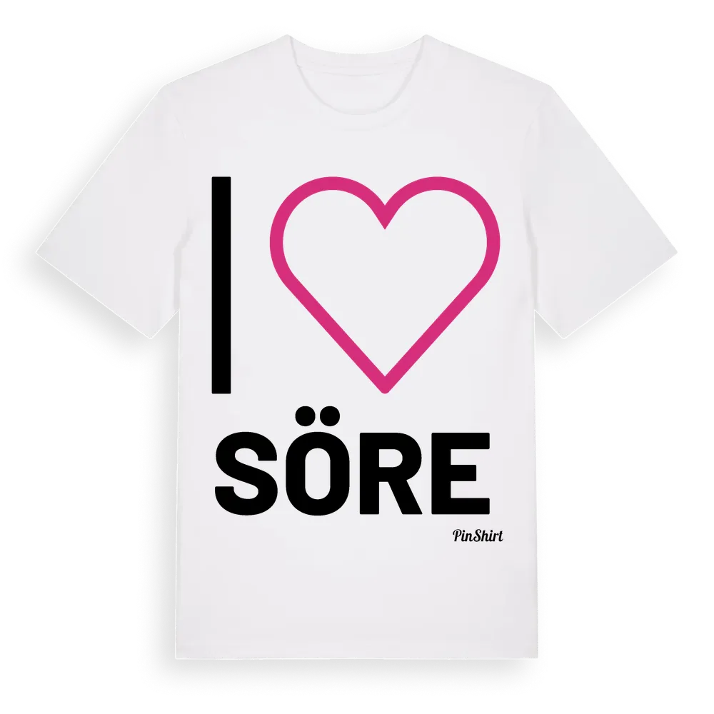 Det klassiska "I ❤ Söre"-motivet i stort format som täcker hela bröstet. För dig som vill visa kärleken till Söre på riktigt. Premium bomull, unisex – från Söre i Västra Götalands län.