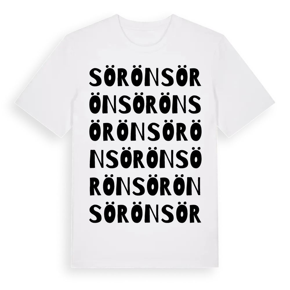 En ordlek byggd på Söröns namn. Subtilt och klurig – ett motiv som bara de som verkligen känner platsen fullt ut förstår. Premium bomull, unisex – från byn Sörön i Västra Götalands län.