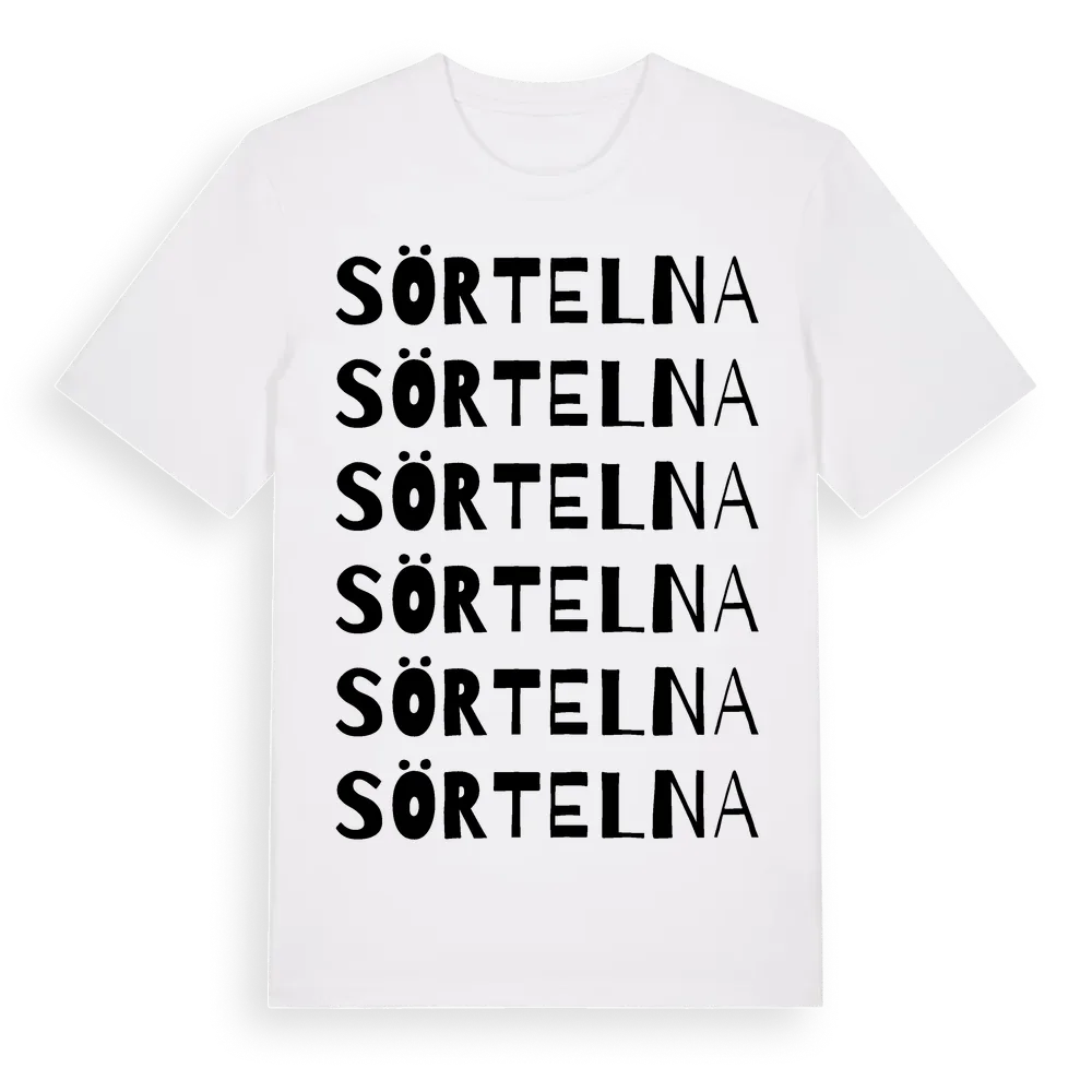 Sörtelna ordlek t-shirt är inspirerad av byn Sörtelna i Västra Götalands län, Sverige. Tröjan är designad för dig som har en speciell koppling till platsen – oavsett om du bor här, har rötterna här eller bara älskar Sörtelna.
