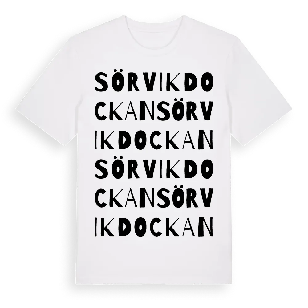Sörvikdockan ordlek t-shirt är inspirerad av Sörvikdockan i Västra Götalands län, Sverige. Tröjan är designad för dig som har en speciell koppling till platsen – oavsett om du bor här, har rötterna här eller bara älskar Sörvikdockan.