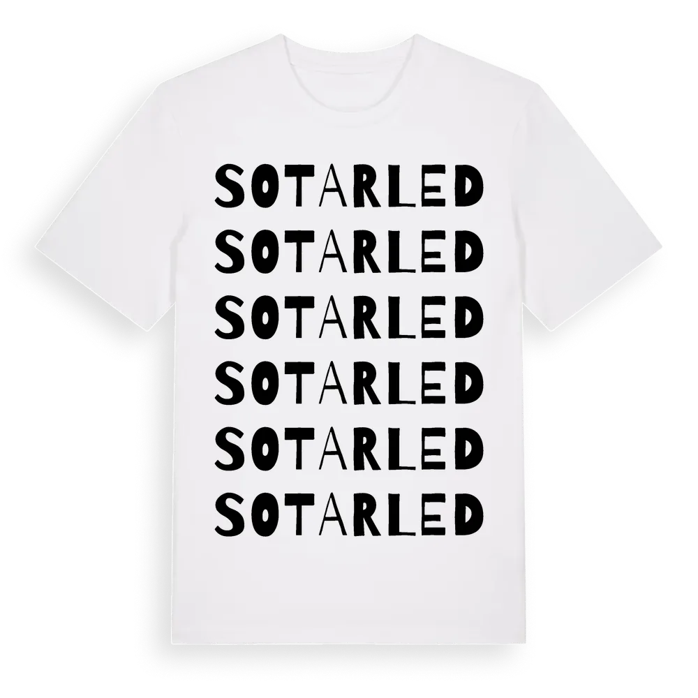 En ordlek byggd på Sotarleds namn. Subtilt och klurig – ett motiv som bara de som verkligen känner platsen fullt ut förstår. Premium bomull, unisex – från Sotarled i Västra Götalands län.