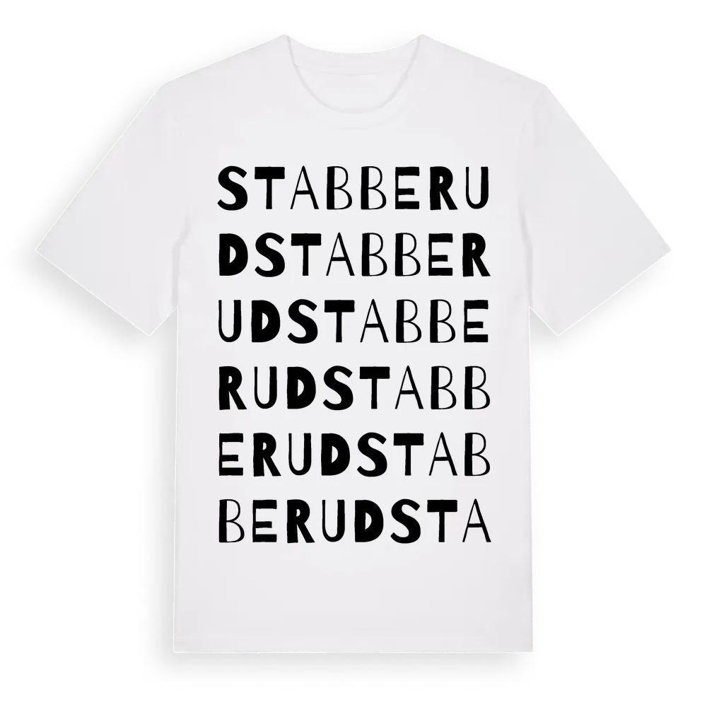 Stabberud ordlek t-shirt är inspirerad av Stabberud i Västra Götalands län, Sverige. Tröjan är designad för dig som har en speciell koppling till platsen – oavsett om du bor här, har rötterna här eller bara älskar Stabberud.