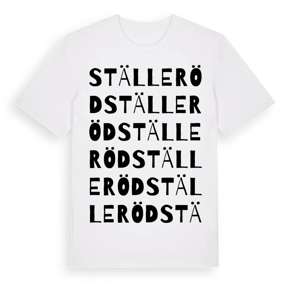 Ställeröd ordlek t-shirt är inspirerad av Ställeröd i Västra Götalands län, Sverige. Tröjan är designad för dig som har en speciell koppling till platsen – oavsett om du bor här, har rötterna här eller bara älskar Ställeröd.