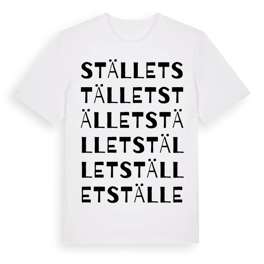 En ordlek byggd på Ställets namn. Subtilt och klurig – ett motiv som bara de som verkligen känner platsen fullt ut förstår. Premium bomull, unisex – från Stället i Västra Götalands län.