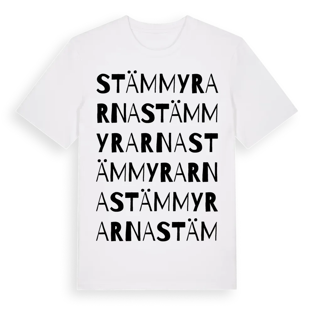 Stämmyrarna ordlek t-shirt är inspirerad av Stämmyrarna i Västra Götalands län, Sverige. Tröjan är designad för dig som har en speciell koppling till platsen – oavsett om du bor här, har rötterna här eller bara älskar Stämmyrarna.