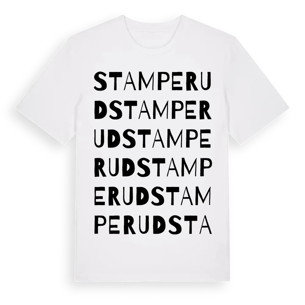 Stamperud ordlek t-shirt är inspirerad av Stamperud i Västra Götalands län, Sverige. Tröjan är designad för dig som har en speciell koppling till platsen – oavsett om du bor här, har rötterna här eller bara älskar Stamperud.
