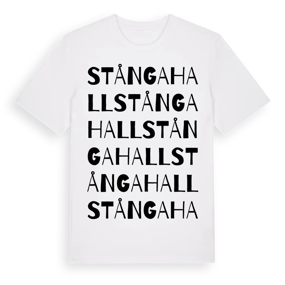 Stångahall ordlek t-shirt är inspirerad av Stångahall i Västra Götalands län, Sverige. Tröjan är designad för dig som har en speciell koppling till platsen – oavsett om du bor här, har rötterna här eller bara älskar Stångahall.