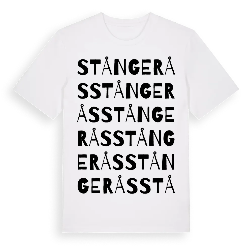 Stångerås ordlek t-shirt är inspirerad av Stångerås i Västra Götalands län, Sverige. Tröjan är designad för dig som har en speciell koppling till platsen – oavsett om du bor här, har rötterna här eller bara älskar Stångerås.