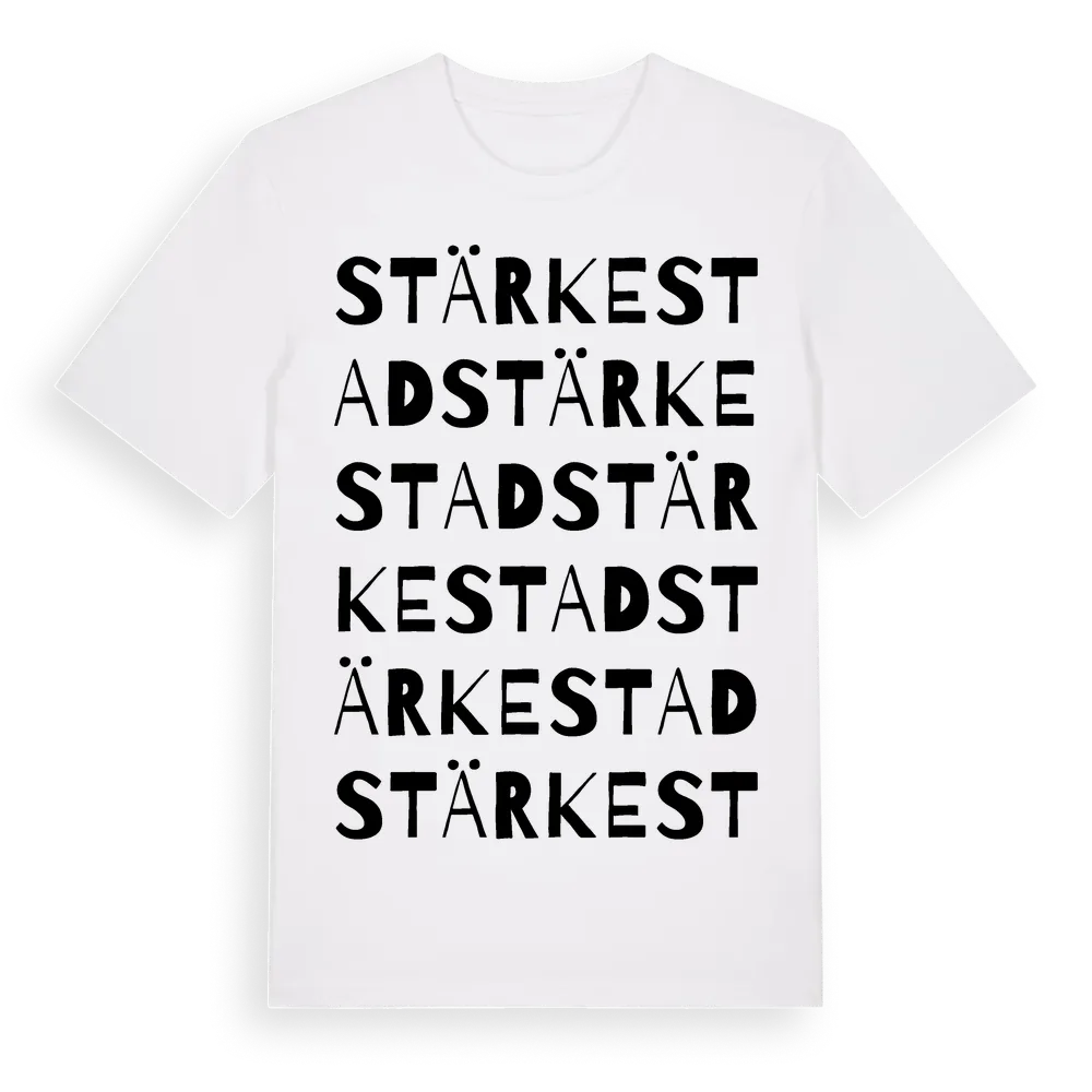 Stärkestad ordlek t-shirt är inspirerad av byn Stärkestad i Västra Götalands län, Sverige. Tröjan är designad för dig som har en speciell koppling till platsen – oavsett om du bor här, har rötterna här eller bara älskar Stärkestad.