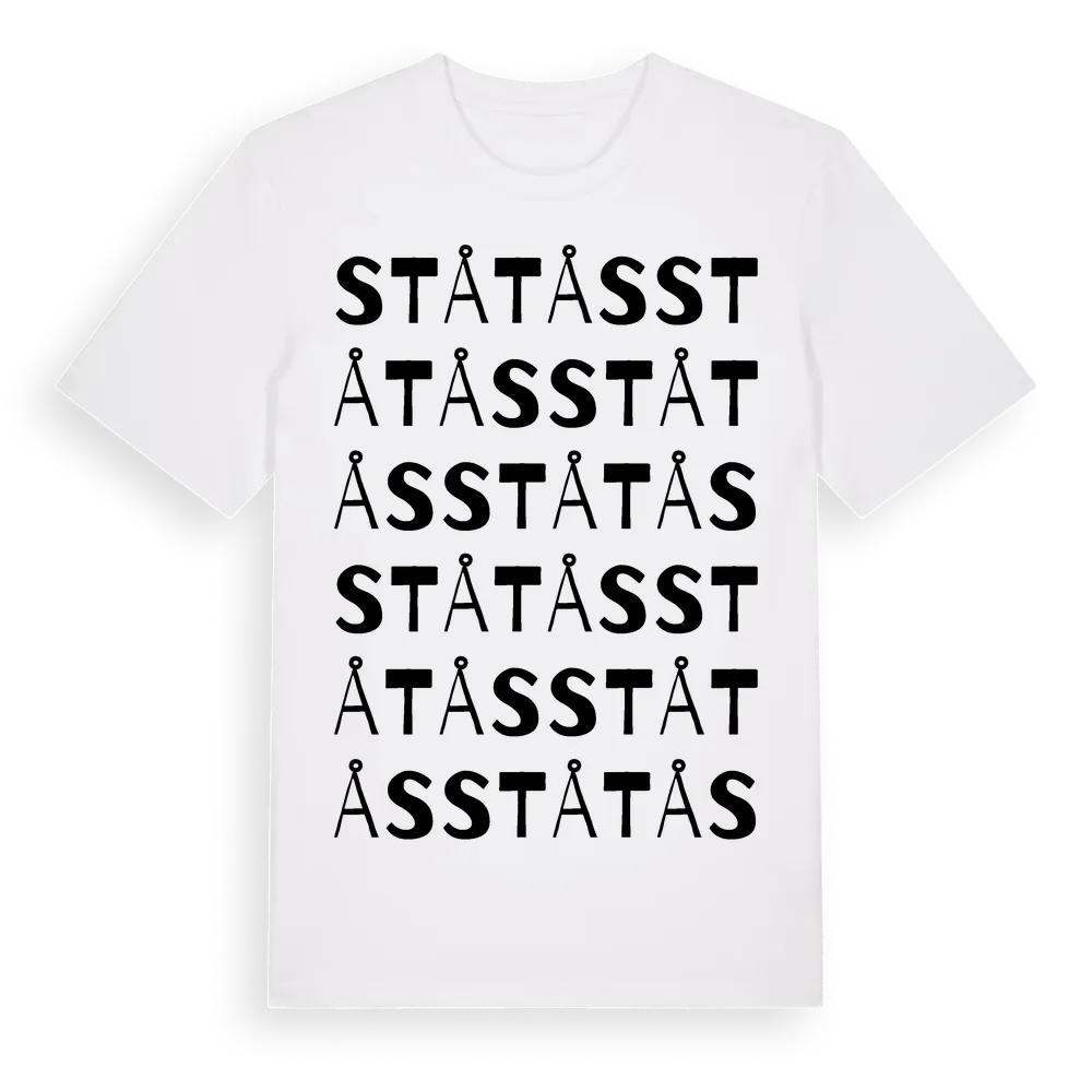 Ståtås ordlek t-shirt är inspirerad av Ståtås i Västra Götalands län, Sverige. Tröjan är designad för dig som har en speciell koppling till platsen – oavsett om du bor här, har rötterna här eller bara älskar Ståtås.