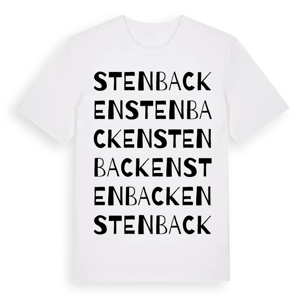 Stenbacken ordlek t-shirt är inspirerad av Stenbacken i Västra Götalands län, Sverige. Tröjan är designad för dig som har en speciell koppling till platsen – oavsett om du bor här, har rötterna här eller bara älskar Stenbacken.