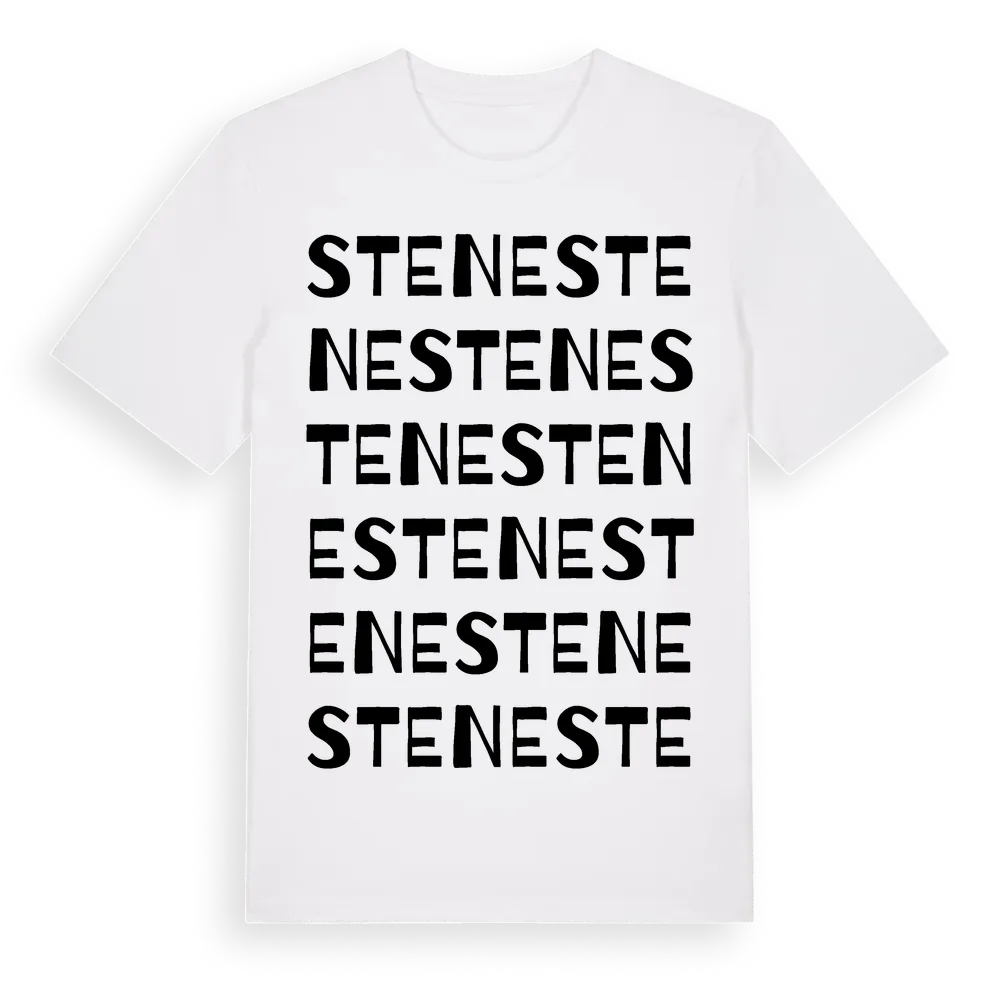 En ordlek byggd på Stenes namn. Subtilt och klurig – ett motiv som bara de som verkligen känner platsen fullt ut förstår. Premium bomull, unisex – från Stene i Västra Götalands län.