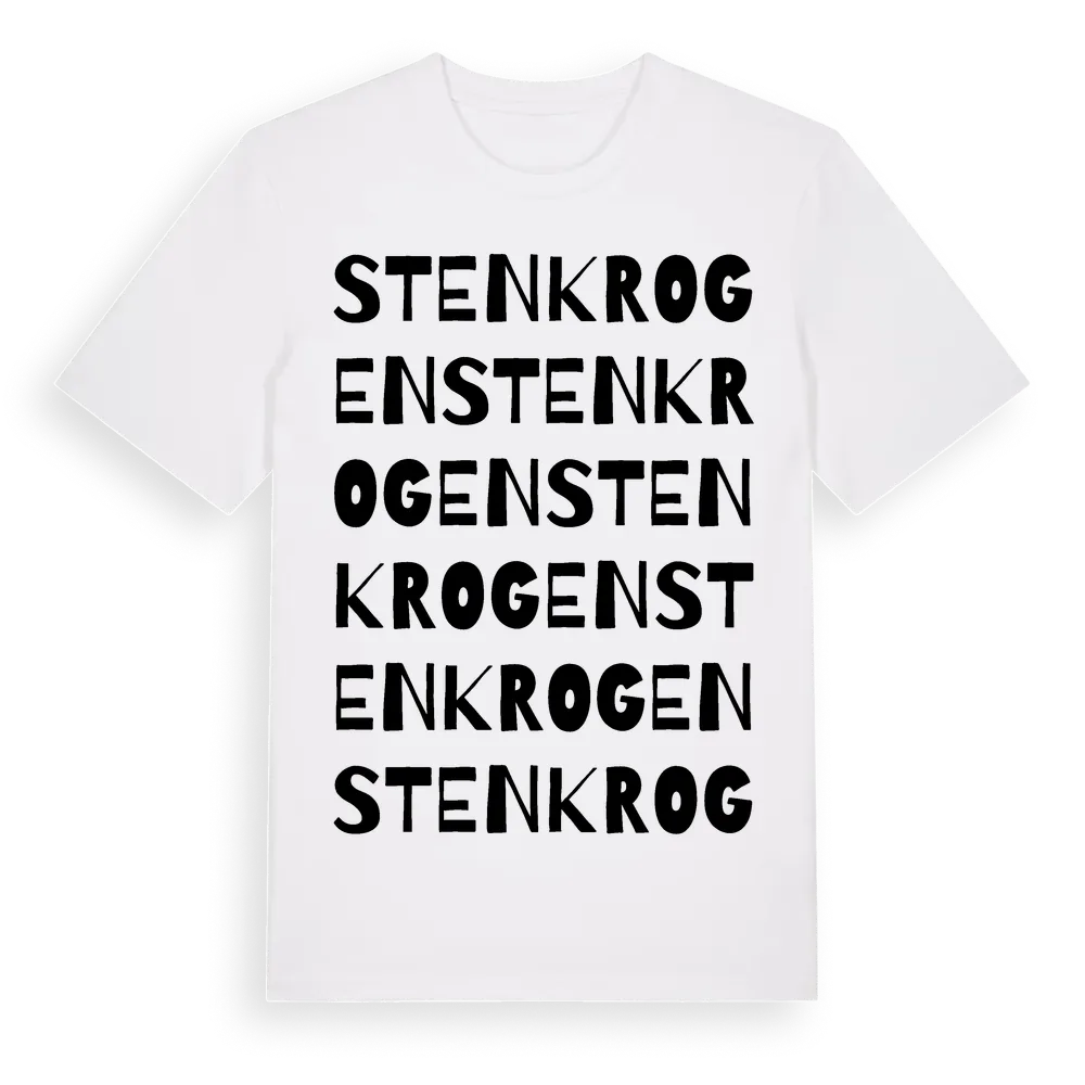 Stenkrogen ordlek t-shirt är inspirerad av Stenkrogen i Västra Götalands län, Sverige. Tröjan är designad för dig som har en speciell koppling till platsen – oavsett om du bor här, har rötterna här eller bara älskar Stenkrogen.