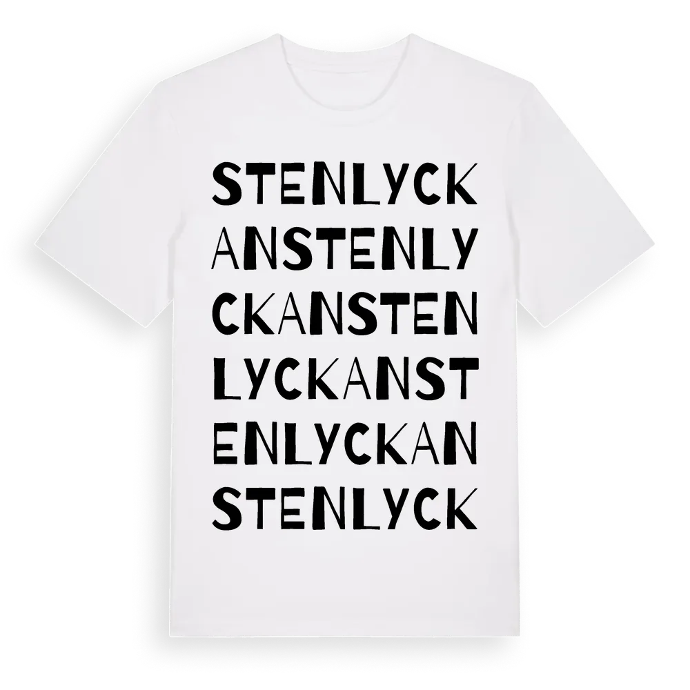Stenlyckan ordlek t-shirt är inspirerad av Stenlyckan i Västra Götalands län, Sverige. Tröjan är designad för dig som har en speciell koppling till platsen – oavsett om du bor här, har rötterna här eller bara älskar Stenlyckan.