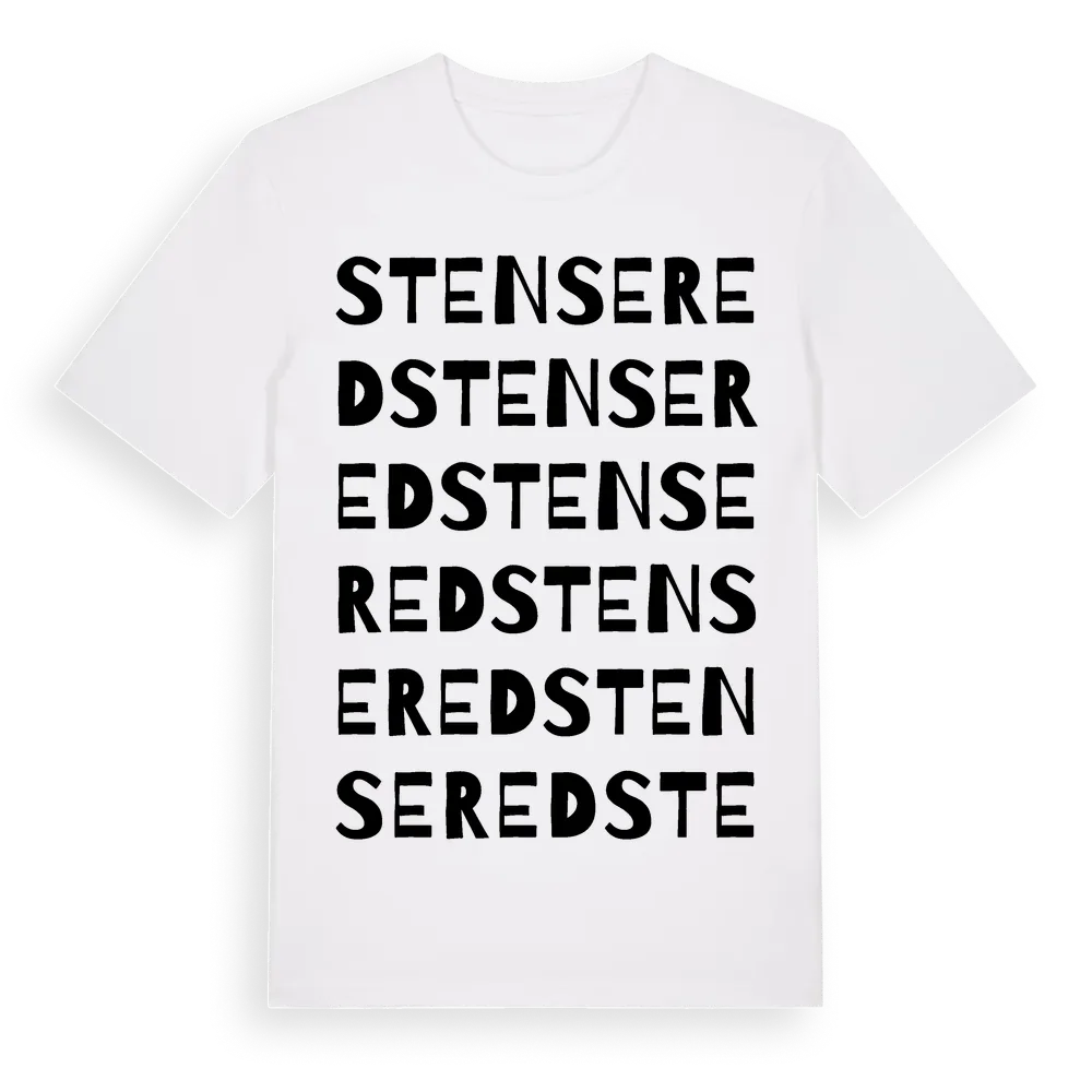 Stensered ordlek t-shirt är inspirerad av Stensered i Västra Götalands län, Sverige. Tröjan är designad för dig som har en speciell koppling till platsen – oavsett om du bor här, har rötterna här eller bara älskar Stensered.