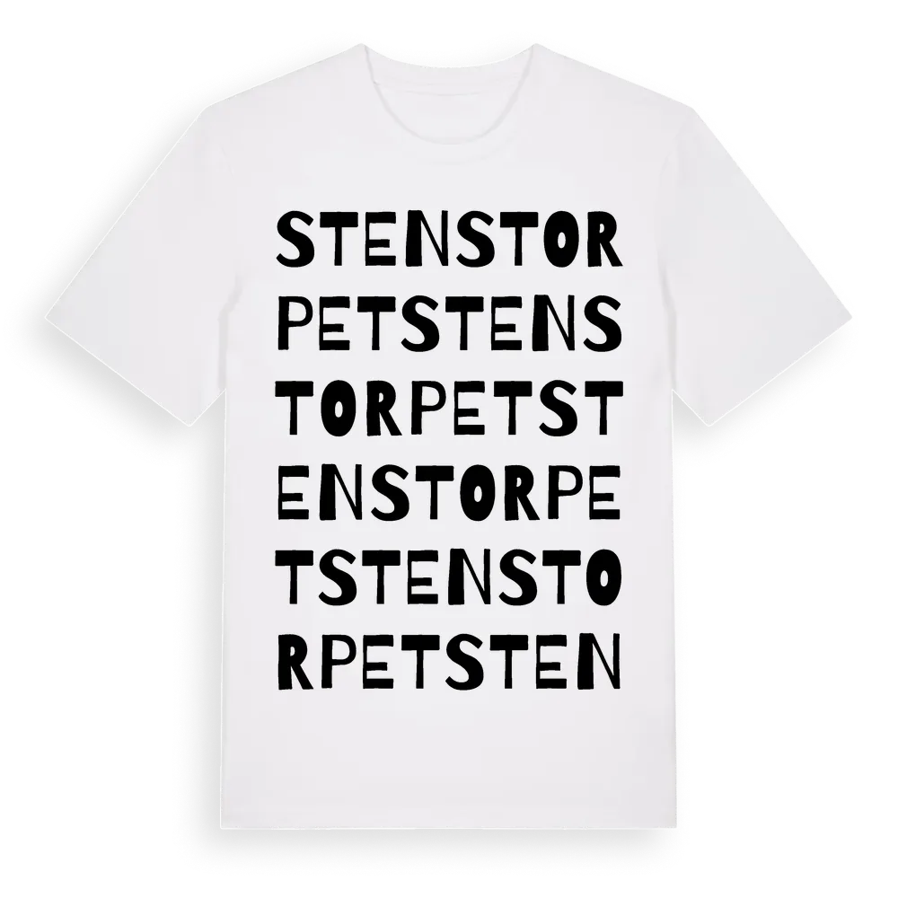 Stenstorpet ordlek t-shirt är inspirerad av Stenstorpet i Västra Götalands län, Sverige. Tröjan är designad för dig som har en speciell koppling till platsen – oavsett om du bor här, har rötterna här eller bara älskar Stenstorpet.