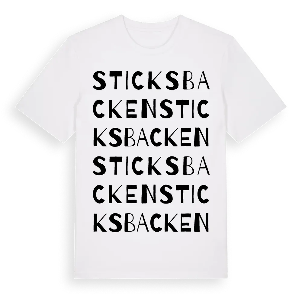 Sticksbacken ordlek t-shirt är inspirerad av Sticksbacken i Västra Götalands län, Sverige. Tröjan är designad för dig som har en speciell koppling till platsen – oavsett om du bor här, har rötterna här eller bara älskar Sticksbacken.