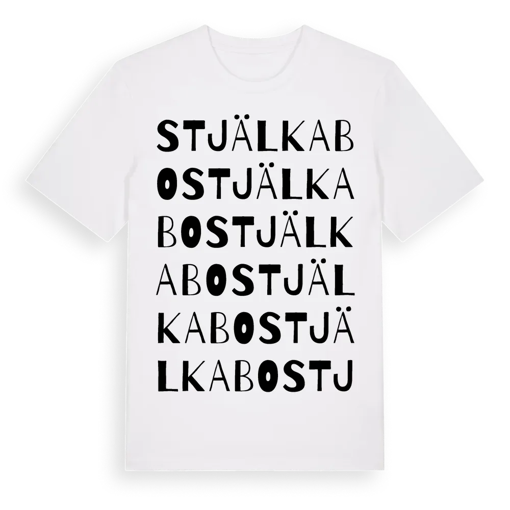 Stjälkabo ordlek t-shirt är inspirerad av Stjälkabo i Västra Götalands län, Sverige. Tröjan är designad för dig som har en speciell koppling till platsen – oavsett om du bor här, har rötterna här eller bara älskar Stjälkabo.