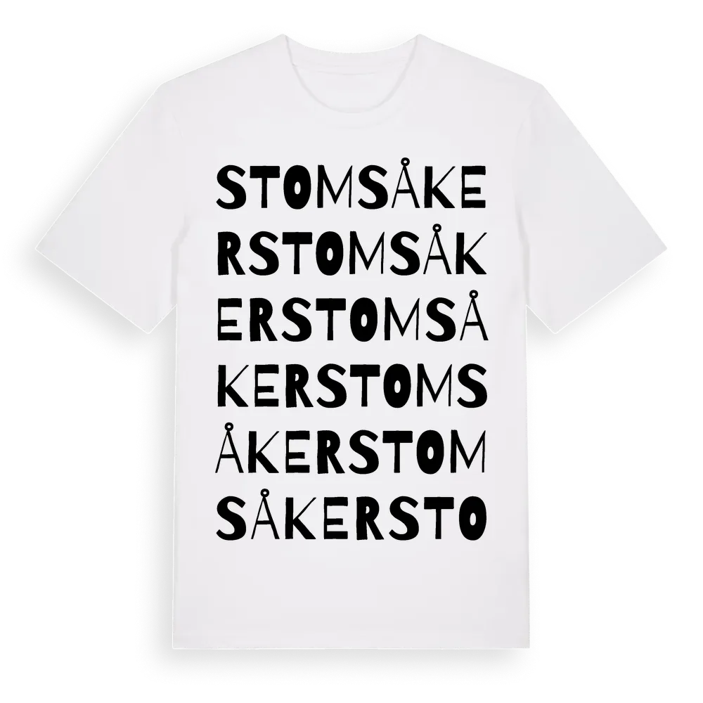 Stomsåker ordlek t-shirt är inspirerad av byn Stomsåker i Västra Götalands län, Sverige. Tröjan är designad för dig som har en speciell koppling till platsen – oavsett om du bor här, har rötterna här eller bara älskar Stomsåker.