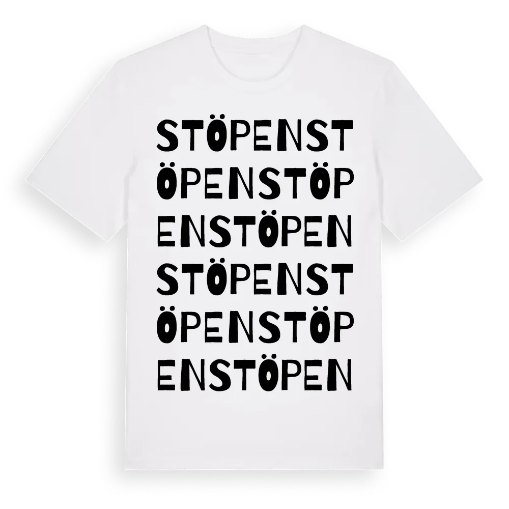 En ordlek byggd på Stöpens namn. Subtilt och klurig – ett motiv som bara de som verkligen känner platsen fullt ut förstår. Premium bomull, unisex – från byn Stöpen i Västra Götalands län.