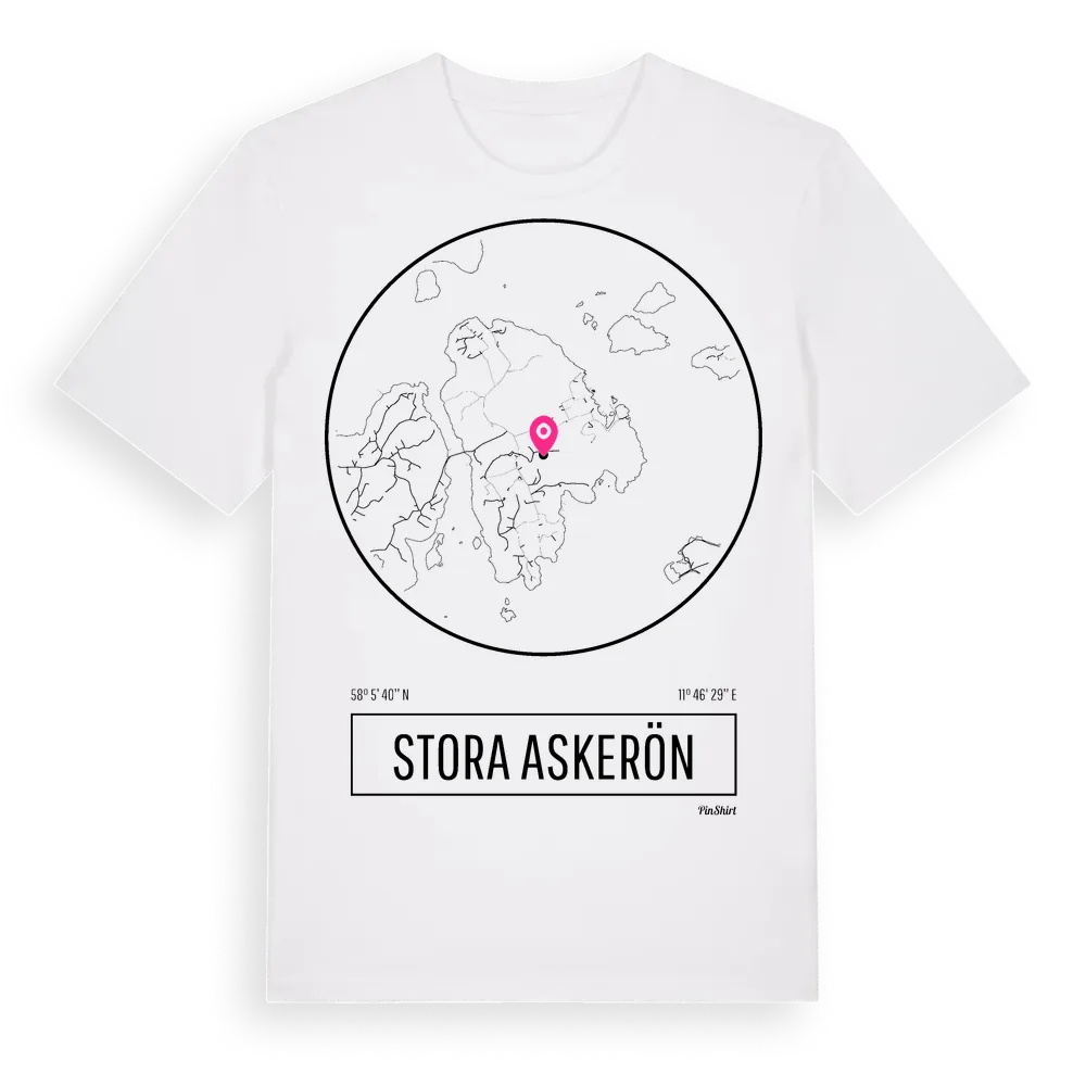 Stora Askerön t-shirt är inspirerad av ön Stora Askerön i Västra Götalands län, Sverige. Tröjan är designad för dig som har en speciell koppling till platsen – oavsett om du bor här, har rötterna här eller bara älskar Stora Askerön.