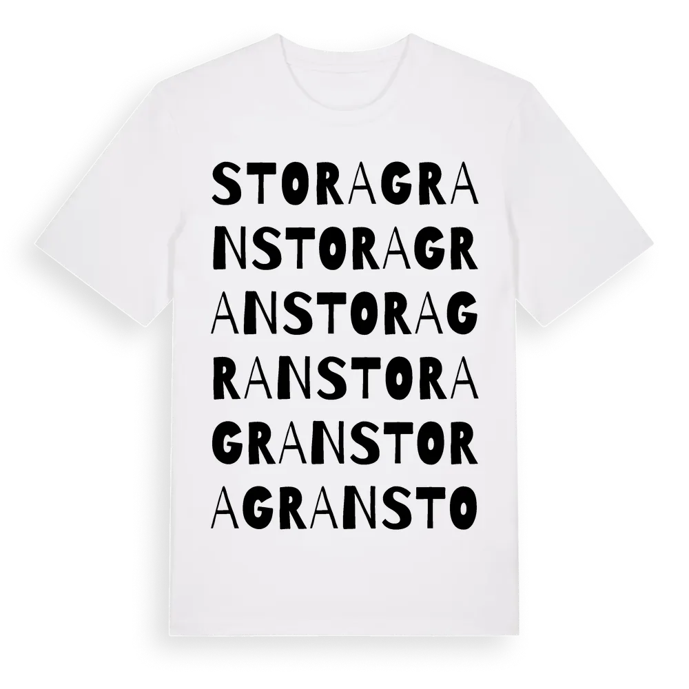 En ordlek byggd på Stora Grans namn. Subtilt och klurig – ett motiv som bara de som verkligen känner platsen fullt ut förstår. Premium bomull, unisex – från Stora Gran i Västra Götalands län.