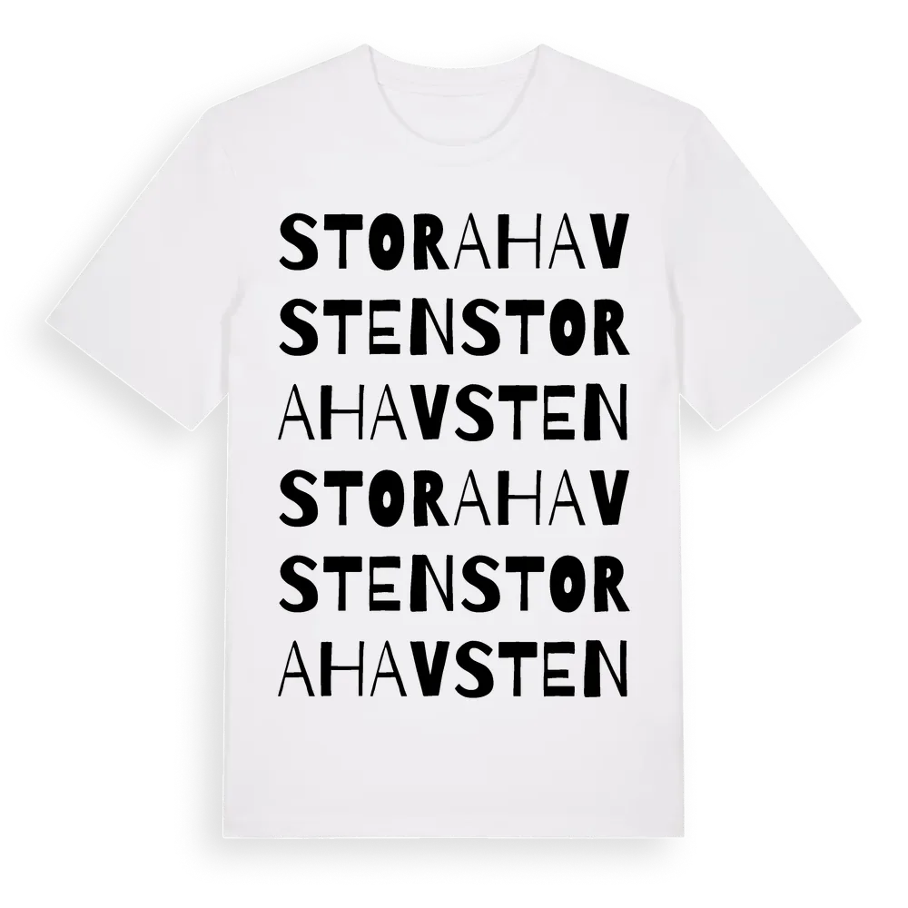 Stora Havsten ordlek t-shirt är inspirerad av stadsdelen Stora Havsten i Västra Götalands län, Sverige. Tröjan är designad för dig som har en speciell koppling till platsen – oavsett om du bor här, har rötterna här eller bara älskar Stora Havsten.