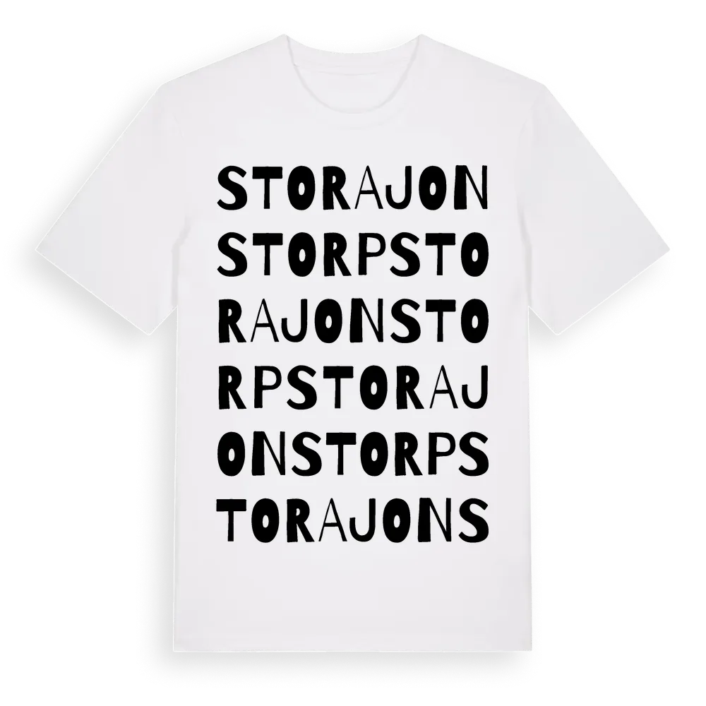 Stora Jonstorp ordlek t-shirt är inspirerad av Stora Jonstorp i Västra Götalands län, Sverige. Tröjan är designad för dig som har en speciell koppling till platsen – oavsett om du bor här, har rötterna här eller bara älskar Stora Jonstorp.