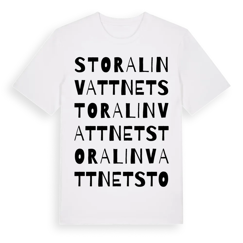 Stora Linvattnet ordlek t-shirt är inspirerad av Stora Linvattnet i Västra Götalands län, Sverige. Tröjan är designad för dig som har en speciell koppling till platsen – oavsett om du bor här, har rötterna här eller bara älskar Stora Linvattnet.