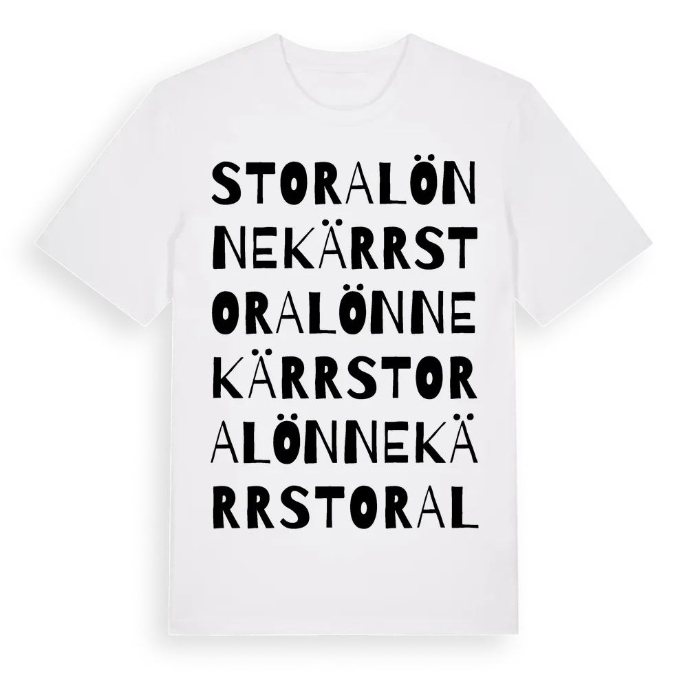 Stora Lönnekärr ordlek t-shirt är inspirerad av Stora Lönnekärr i Västra Götalands län, Sverige. Tröjan är designad för dig som har en speciell koppling till platsen – oavsett om du bor här, har rötterna här eller bara älskar Stora Lönnekärr.