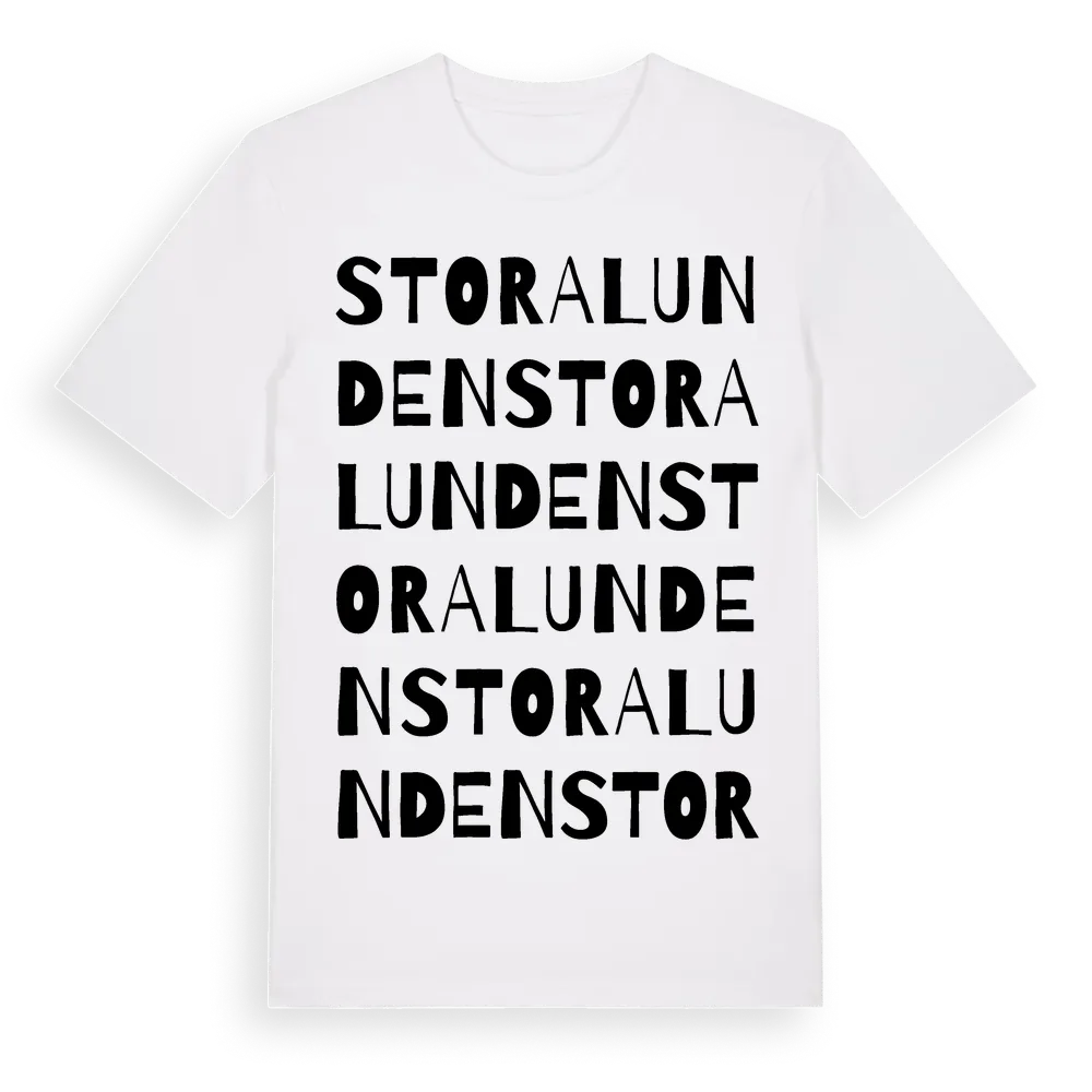 Stora Lunden ordlek t-shirt är inspirerad av Stora Lunden i Västra Götalands län, Sverige. Tröjan är designad för dig som har en speciell koppling till platsen – oavsett om du bor här, har rötterna här eller bara älskar Stora Lunden.