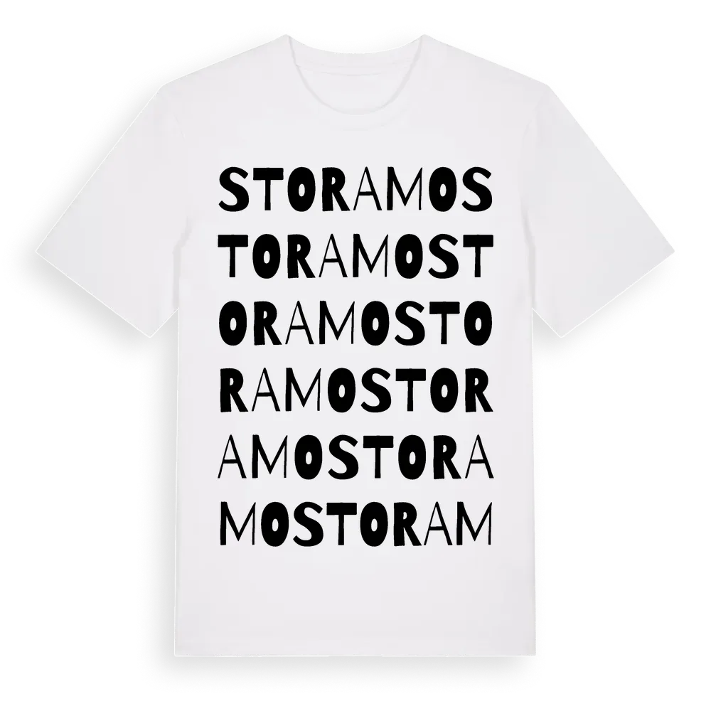 Stora Mo ordlek t-shirt är inspirerad av Stora Mo i Västra Götalands län, Sverige. Tröjan är designad för dig som har en speciell koppling till platsen – oavsett om du bor här, har rötterna här eller bara älskar Stora Mo.