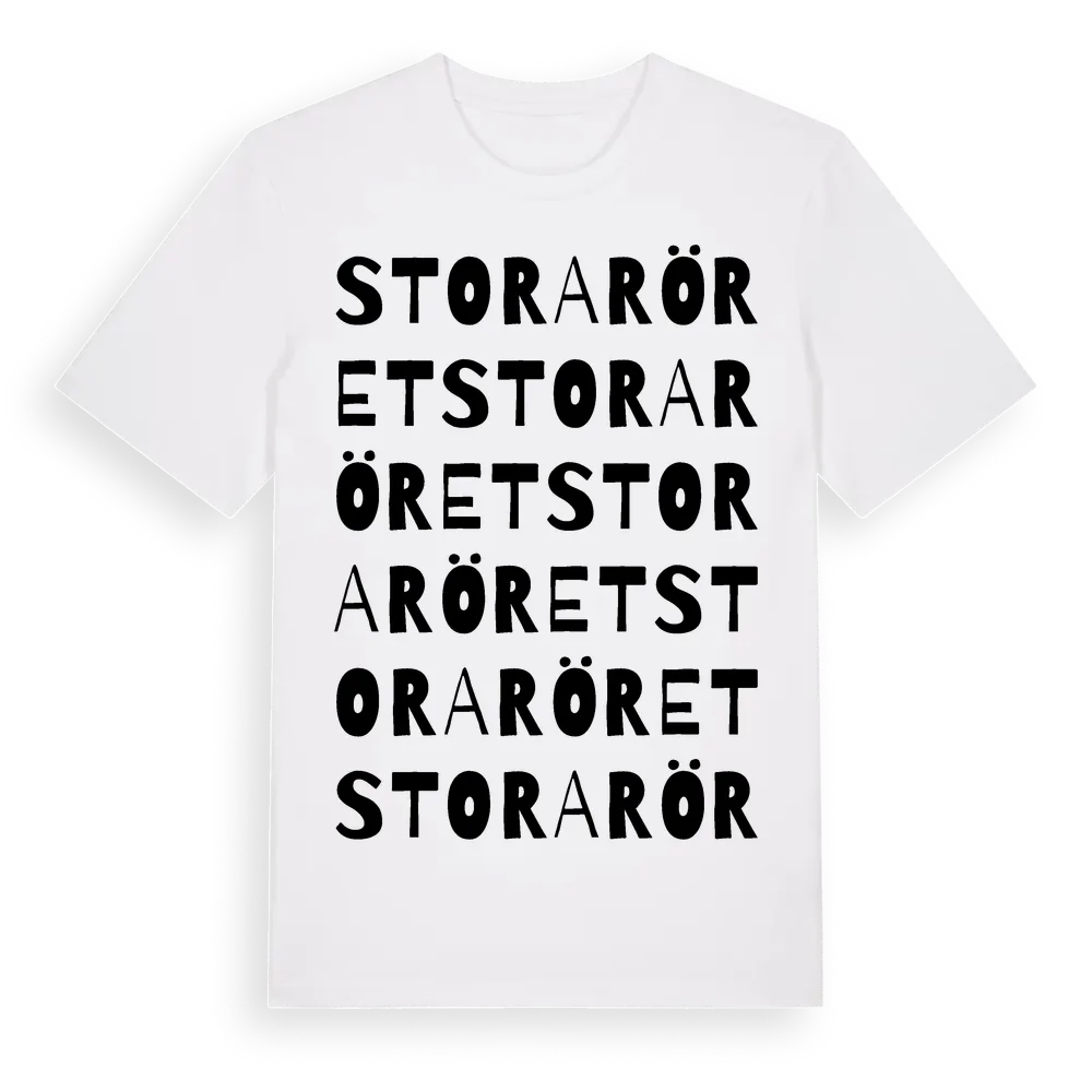 Stora Röret ordlek t-shirt är inspirerad av byn Stora Röret i Västra Götalands län, Sverige. Tröjan är designad för dig som har en speciell koppling till platsen – oavsett om du bor här, har rötterna här eller bara älskar Stora Röret.