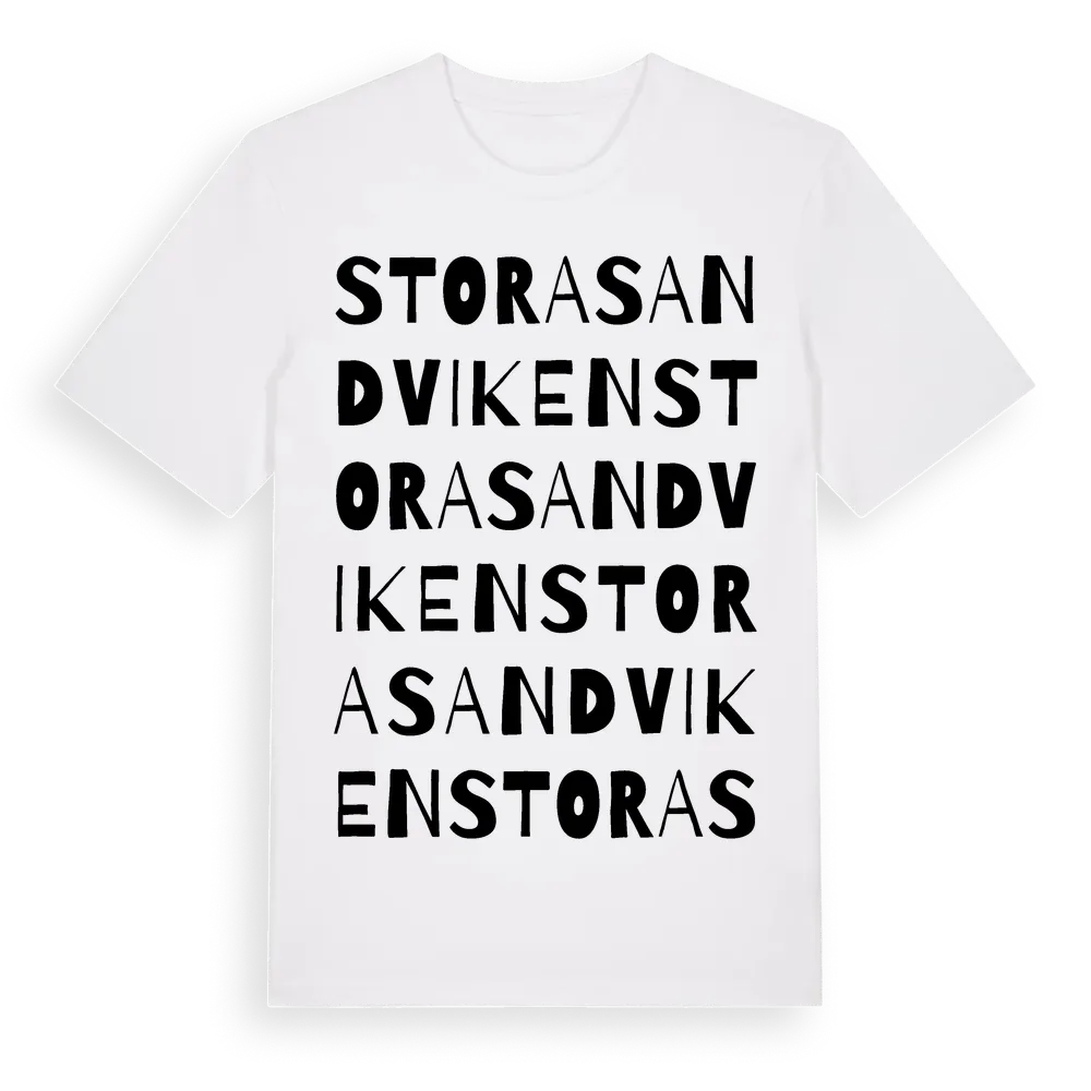 Stora Sandviken ordlek t-shirt är inspirerad av Stora Sandviken i Västra Götalands län, Sverige. Tröjan är designad för dig som har en speciell koppling till platsen – oavsett om du bor här, har rötterna här eller bara älskar Stora Sandviken.