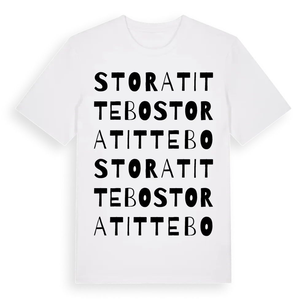 Stora Tittebo ordlek t-shirt är inspirerad av Stora Tittebo i Västra Götalands län, Sverige. Tröjan är designad för dig som har en speciell koppling till platsen – oavsett om du bor här, har rötterna här eller bara älskar Stora Tittebo.